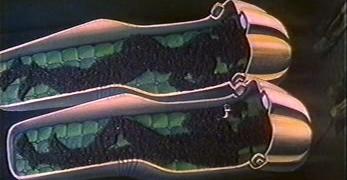 This little known Russian-language short film is rarely seen in the west, but is an engaging (if not exactly warm) adaptation of Bradbury's story. The director, Nazim Tulyakhodzayev, would later direct the live action feature Vel'd (1987), based on several Bradbury short stories. The story shows some changes from Bradbury's story. Where Bradbury has regiments of robot mice and other mechanical servants, this house has one dominant servant, the robot head. Where Bradbury's story takes place in August 2026, the film takes place around New Year's Eve/Day 2026/2027. Where Bradbury's story has the house slowly dying, merely a delayed victim of the atomic war, the film has the house self-destruct. Perhaps because of the robot's agressive appearance, the film feels much colder and more aloof than Bradbury's story. The film's portrayal of the dead inhabitants of the house is more graphic and less mysterious than in Bradbury's tale, where the first "sighting" we have of people is in the shadows the atomic blast has cast of them - and although shadows are arguably more euphemistic than ashes, Bradbury was basing this part of the story on genuine photographs and reports from the Hiroshima blast. Setting the story around New Year's is a workable change to the story: it enables Tulyakhodzayev to incorporate the irony of the celebration (when there is no one there to celebrate) with the logic of snowfall (which, of course, turns out to be fallout). But this is another feature that gives the film a colder touch than Bradbury's story. A striking addition that the film makes is the "morning prayer" section. In a way this seems an unlikely element from a Soviet bloc film, but Tulyakhodzayev is careful to establish that the story is set in the US. Tulyakhodzayev is giving us much more in the way of ironic ritual than Bradbury - where Bradbury focuses primarily on the daily ritual of breakfast, going to work, going to school, Tulyakhodzayev builds in annual ritual, the ritual of prayer, and standing for the national anthem. Remember that this film dates from the early 1980s; there is here a sense of cold war satire very different from what we find in Bradbury's more innocent tale. And if it seems that Christianity might be considered a survivor of armageddon, Tulyakhodzayev puts paid to that idea by having the robot skewer Christ. Tulyakhodzayev has the house destroy itself. This seems an unnecessary plot complication, but it at least provides a sense of conflict which a narrative film usually needs. The way it happens provides what little sense of emotion the film possesses: when the robot head for the first and only time goes outside of the house, it comes back with tears in its eyes. In blind rage, it lunges at its own heart and destroys the house. The lasting original image from the film is of the futility of the bird trying to escape through a window which is nothing more than a fantasy image. And this is where the film remains a bleak vision - despite the promise of Teasdale's lyrics, there seems little hope that this world could recover. This short film, although deviating from Bradbury's story, is an accomplished piece of work with some fascinating animation techniques (not only cel animation, but cut-outs and what appears to be some 3D work involving the ashes). It shows quite clearly what can be done with Bradbury material in the short form. |