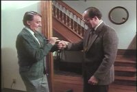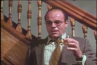 As a man and woman approach a house, they are being watched, by a man, Acton. We next see Acton looking very agitated, backing away from a bowl containing glass fruit. He trips over a corpse. He composes himself and picks up a glass of whisky. He looks down at the corpse and asks, "What are you smiling at?" The corpse does, indeed, look happy. The corpse is Huxley, the man seen entering the house with the woman. Acton drinks, saying "Cheers - and good riddance". As Acton tips the class, he sees fingerprints all over it. He curses, and polishes the glass with his handkerchief. He puts it down carefully, and wanders over to a table where he picks up a gun. Flashback to a gun shop: a dealer is selling Acton a gun. Acton seems surprised when the dealer offers him bullets. "I just want to scare him". The present: Acton puts the gun in his pocket and wanders back to the corpse. He talks to it, calling it "Hux" and "old bean". Then he reaches down and wipes the smile of Huxley's face. Flashback: Huxley picks up a manuscript and hands it to Acton. We discover that Huxley is an editor, and had promised he would read (but not publish) Acton's story. Acton has spent a whole year shaping the story to Huxley's requirements, but Huxley says it's no good. He tells Acton he has no talent, and never will have. Huxley cryptically says that by leading Acton on he was "doing Mary a favour". Back in the present, Acton suddenly realises he is leaning on a door frame, touching it with his fingers. Acton remembers being told to close the door, and remembers touching the doorframe as well. Acton whispers "Fingerprints!" to himself, and begins polishing the door frame with his handkerchief. He is pleased that he has realised he almost made a mistake, and begins gloating to the corpse. As he talks, he begins polishing the floorboards surrounding it. Flashback: As Huxley is holding an empty glass in each hand, he gets Acton to open the cabinet and remove a bottle of scotch. The present: Acton recalls the incident, and makes his way to the cabinet to polish the decanter and glasses. Flashback: Huxley proposes a toast to Mary, who is evidently Acton's wife. Huxley tells Acton to relax: "It's all over between us". Huxley takes various items from the cabinet and hands them to Acton for him to "feel the texture". He shows him a chess set and makes him handle one of the pieces. Acton announces that he has come here to kill Huxley. Huxley is not at all surprised. The present: Acton sees the chess set and doesn't know which piece to polish. He jubilantly selects one piece to polish, then polishes the table and a nearby chair. He approaches the fruit bowl and polishes one piece of fruit. He looks concerned - he says he didn't touch it, but "better safe than sorry" - he is compelled to return to the bowl and polish each piece. As the clock chimes again, Acton worries that the polishing will take all night. He suddenly realises that he needs to wear gloves to stop adding to the prints. He heads up the stairs, angering himself when he grabs the banister. Upstairs he see Mary sitting at a mirror, brushing her hair. He sees Huxley reach over and kiss her. He shakes his head - this is his imagination (or memory) playing tricks on him. He begins rummaging through drawers looking for gloves. He finds some, puts them on. As he goes downstairs, he polishes the handrail with his gloved hands. As he turns a corner, he catches sight of Mary and Huxley in a mirror. He continues polishing every surface in sight. He picks up the ming vase he had felt earlier and gleefully polishes it. He steps back, agitated yet triumphant. "That's everything! I didn't touch anything else...did I?" Acton decides it's time to go, but as he makes his way past the corpse he hears Huxley's voice in his head: "Touch... touch!" There is a knock at the door. Through the frosted glass we see Mary, who calls out to Huxley. Acton hides under the stairs, whispering for her to go away. Eventually she does. Acton's mind again wanders to the fruit bowl. He tells it "No, I didn't touch you". As he takes the fruit out again, a peach rolls off the table... Flashback: Husley makes Acton handle a vase. Acton begins to cry, and throws the vase to the floor. Huxley declares that it's time to kill. He takes Acton's hand, places it on the gun in Acton's pocket, and makes Acton point the gun at him. He urges him to pull the trigger, calling Acton a stupid coward. When Acton finally does so, there is just a click. Huxley realises there are no bullets - which he considers further evidence of Acton's cowardice. "What a crumb you are - no wonder Mary loathes you!" Huxley begins to physically attack Acton, and Acton responds, strangling Huxley. The present: Acton catches the falling peach and polishes it. He thinks about whether Huxley could have made him touch the fruit at the bottom of the bowl, and idly wanders into the next room... where he sees thousands of fingerprints on a black table. Polishing them away, he sees the thousand shards of broken vase on the floor. He declares that he must find every piece. Hearing Mary knock at the door again, He rushes to open it - but she is not there. He shouts her name, scaring a man walking a dog. He rushes back into the house and sees countless fingerprints on the banister, and begins polishing. The police arrive and find Acton upstairs, polishing a silver dinner service. He tells them, "I'm almost done". As Huxley's body is taken away, Huxley's doctor ("doctor, neighbour, friend") tells a policeman that Huxley only had less than a month to live. He suggests that, in a way, Acton did Huxley a big favour. |