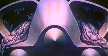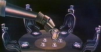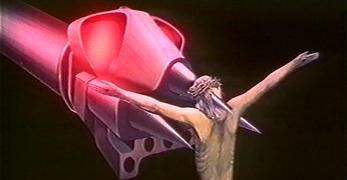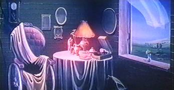 This little known Russian-language short film is rarely seen in the west, but is an engaging (if not exactly warm) adaptation of Bradbury's story. The director, Nazim Tulyakhodzayev, would later direct the live action feature Vel'd (1987), based on several Bradbury short stories. The story shows some changes from Bradbury's story. Where Bradbury has regiments of robot mice and other mechanical servants, this house has one dominant servant, the robot head. Where Bradbury's story takes place in August 2026, the film takes place around New Year's Eve/Day 2026/2027. Where Bradbury's story has the house slowly dying, merely a delayed victim of the atomic war, the film has the house self-destruct. Perhaps because of the robot's agressive appearance, the film feels much colder and more aloof than Bradbury's story. The film's portrayal of the dead inhabitants of the house is more graphic and less mysterious than in Bradbury's tale, where the first "sighting" we have of people is in the shadows the atomic blast has cast of them - and although shadows are arguably more euphemistic than ashes, Bradbury was basing this part of the story on genuine photographs and reports from the Hiroshima blast. Setting the story around New Year's is a workable change to the story: it enables Tulyakhodzayev to incorporate the irony of the celebration (when there is no one there to celebrate) with the logic of snowfall (which, of course, turns out to be fallout). But this is another feature that gives the film a colder touch than Bradbury's story. A striking addition that the film makes is the "morning prayer" section. In a way this seems an unlikely element from a Soviet bloc film, but Tulyakhodzayev is careful to establish that the story is set in the US. Tulyakhodzayev is giving us much more in the way of ironic ritual than Bradbury - where Bradbury focuses primarily on the daily ritual of breakfast, going to work, going to school, Tulyakhodzayev builds in annual ritual, the ritual of prayer, and standing for the national anthem. Remember that this film dates from the early 1980s; there is here a sense of cold war satire very different from what we find in Bradbury's more innocent tale. And if it seems that Christianity might be considered a survivor of armageddon, Tulyakhodzayev puts paid to that idea by having the robot skewer Christ. Tulyakhodzayev has the house destroy itself. This seems an unnecessary plot complication, but it at least provides a sense of conflict which a narrative film usually needs. The way it happens provides what little sense of emotion the film possesses: when the robot head for the first and only time goes outside of the house, it comes back with tears in its eyes. In blind rage, it lunges at its own heart and destroys the house. The lasting original image from the film is of the futility of the bird trying to escape through a window which is nothing more than a fantasy image. And this is where the film remains a bleak vision - despite the promise of Teasdale's lyrics, there seems little hope that this world could recover. This short film, although deviating from Bradbury's story, is an accomplished piece of work with some fascinating animation techniques (not only cel animation, but cut-outs and what appears to be some 3D work involving the ashes). It shows quite clearly what can be done with Bradbury material in the short form. |