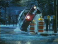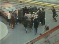 A town, night. People begin leaving a party and piling into their cars. One man, Spallner, gets into his car alone, and drives rapidly through the nearly empty streets. He swerves to avoid a dog. His car flips over. The wheels still spinning, a clock chimes two, and a crowd begins to gather. Voices from the crowd variously call out "don't move him", "let's do it now", "give him air", "the ambulance is coming. An ambulance arrives, and the crowd parts. As Spallner is put on board the ambulance, he watches the members of the crowd wander away. Spallner awakes in the hospital. He voices his puzzlement at how the crowd could have gathered within the thirty seconds it would take for his wheels to to spinning. The doctor tells him that it may have seemed like thirty seconds, but it was probably three or four minutes. After leaving hospital, Spallner is straight back at work, apparently making neon lamps. His friend Morgan drops by with a bottle. They drink. Spallner spills his drink, and their is the sound of a traffic accdent outside. Morgan runs to a window. Spallner looks at his watch and begins timing. He looks at the accident scene through the window, and sees a crow being to gather. Within twenty-one seconds, the crowd is large and fully formed. While Morgan phones for an ambulance, Spallner goes out to look at the crowd. He stands among them as the voice a similar refrain of "give her air", "we should make her comfortable", etc. Spallner claims to recognise several faces in the crowd, from his accident, but Morgan doesn't know what he's talking about. Spallner tries to stop the crowd moving the woman, but is unsuccessful. He is convinced they have killed the woman. Spallner talks to a crowd member who has been taking photos. Spallner lays out photos of crowd members, and identified several of them as being at his accident. He tells Morgan that he can help him: "you shoot the news, you can get me tapes of accident crowds." Spallner wanders the streets, looking for more accidents. He stands on a bridge over a freeway. He takes a video camera onto the streets. He is becoming obsessive. Morgan brings him a huge pile of news tapes. Spallner looks through them. He shows Morgan the pattern he has spotted. Eleven accidents, eleven tapes. Accident scenes two-three miles apart. The same faces appearing again and again. "There - the kid...the red-haired woman...the old man...there he is again...Remember? You shot this, three months ago." Morgan is becoming intrigued. Spallner then points out a sixth figure who is always present. It is a shadowy figure, always in the same clothers, but he can never make out the face. "So who are these people, and why are they doing this?" asks Morgan. In reply, Spallner pulls out a series of morgue photos. Each one shows the face of a crowd member. "They're dead. They're all dead. Car accidents in the past year...I'm convinced they come back to haunt the places where accidents happen." Morgan believes there has got to be "some sane explanation", but he can't think of one. Spallner and Morgan discuss what should be done. Go to the police? Spallner says no. He wants to meet them. Morgan urges him to burn the tapes and forget all about it. He asks, "what happens ehen they find out you know who they are?" "I don't care," Spallner replies. Night. Morgan and Spallner are out driving, looking for an accident scene. As they drive along the snowy, empty city streets, they hear faint whispered voices. Spaller says to stop the car. He and Morgan get out. Spallner spits the old man. He crosses the street and asks Spallner, "What are you doing here?" Spallner follows after him. Another crow member appears in silhouette, and chases after Spallner. He runs to the car and drives off. The road is lined with crowd member, whom he swerves to avoid. He hits someone, and his car flips over, just as at the beginning of the story. He crawls out, and runs to the small crowd which has gathered around the person he has hit. The dead figure is Morgan. The crowd voices begin again, as Spallner rises up and turns, sensing someone or something behind him. Morgan is there, a member of the crowd, moving forward to look at his own death scene. The crowd disperses, leaving Spallner alone to look at the body of his friend. |