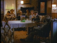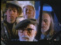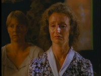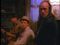 This is a perfectly workable dramatisation of the original story, although it doesn't generate the atmosphere nor the sense of place that we find in the short story. The episode doesn't specify where the action takes place, so the Louisana bayou feel of the short story is here replaced by generic small-town America. The episode also suffers in comparison to the first television version, the 1964 episode of The Alfred Hitchcock Hour. It's not that there are any substantial differences in plotting, but that earlier production has the edge in three areas. First is pace: the Hitchcock episode was deliberately slow, really giving a sense of nothing-much-happens-in-this-town, and a sense of the dedicated scrutiny the townsfolk were willing to give to the mysterious jar. Second is characterisation, particularly with Jahdoo, Gramps and Juke, all of whom had distinctive ways of engaging with the jar in the Hitchcock episode. In this version, only Juke is distinctive. It must be said, though, that this reduced depth of character is probably related to the reduced running time - the Ray Bradbury Theater episode has about half the running time of the Alfred Hitchcock Hour version. Third is the staging. The Hitchcock version contrived to have the townsfolk stare straight into the camera. The audience was made to feel that it was being watched. This increases the level of discomfort we feel when we watch. The RBT version, on the other hand, just has the people sitting around a table. None of this should be taken as criticism of the episode in hand, as it is still an effective and amusing piece. We just happen to be fortunate enough to have seen a strong previous attempt at telling the same story. The episode makes two small but potentially significant changes to the original story. The first of these is the character of Jahdoo. In the original story (and the Hitchcock version), Jahdoo is black, and the character is arguably portrayed in a form that might be unacceptable today. It's not outright racist, but the character borders on a stereotype. In the episode, Jahdoo is not referred to by name; he is played by a white actor; and his voodoo-like interpretation of the jar's contents is downplayed. The second change is more significant, but subtle, and it is to do with Thedy's reasons for being with Charlie, a man who clearly does not satisfy her. In the short story, Thedy needs Charlie's income to support her gallivanting. This is plausible. In the episode, though, she says she stays with Charlie because she needs her freedom. And she says this to her lover, Tom. In other words, she is choosing not to commit to Tom any more than she is emotionally committed to Charlie. So when Thedy ends up in the jar, this is not just Charlie finding a way to possess an uncomplaining Thedy forever - it's a way for him to punish Thedy for himself AND FOR Tom. Randy Bradbshaw's staging of the final scene seems to recognise this in the glances that are exchanged between Charlie and Tom. So while this isn't a classic of television like the Hitchcock version, it works; and it does re-illuminate some character relationships from the original story. Incidentally, Jennifer Dale (Thedy) also appeared in the title role of "Banshee". |